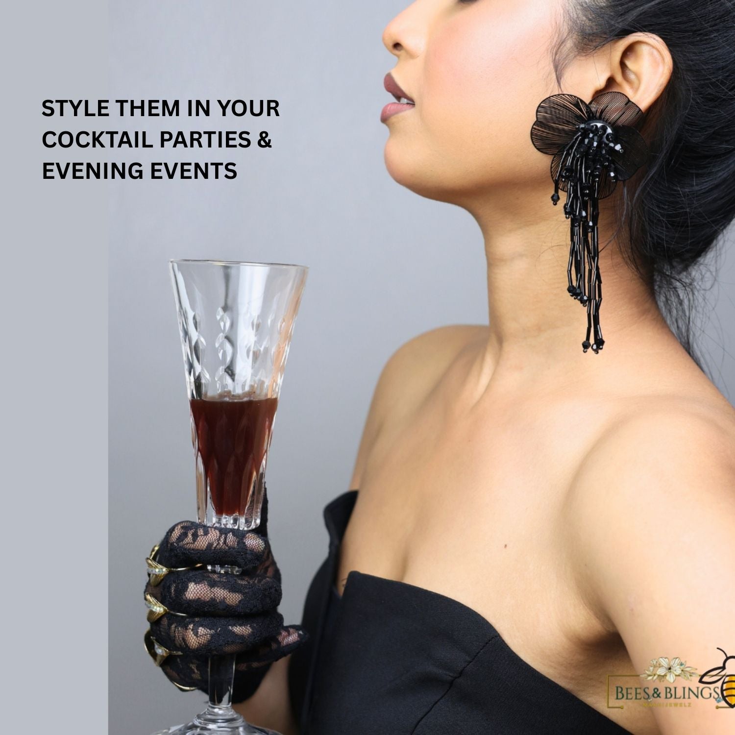 Elevate your evening look with these black floral party wear statement earrings, perfect for adding a bold yet elegant touch to any outfit.