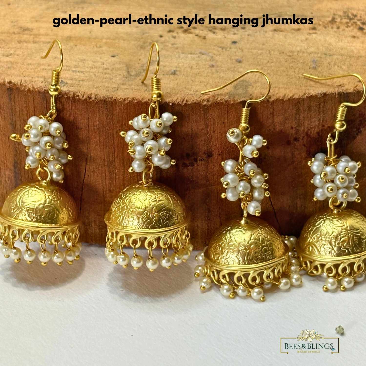 - Color : GOLDEN PEARL jhumkis