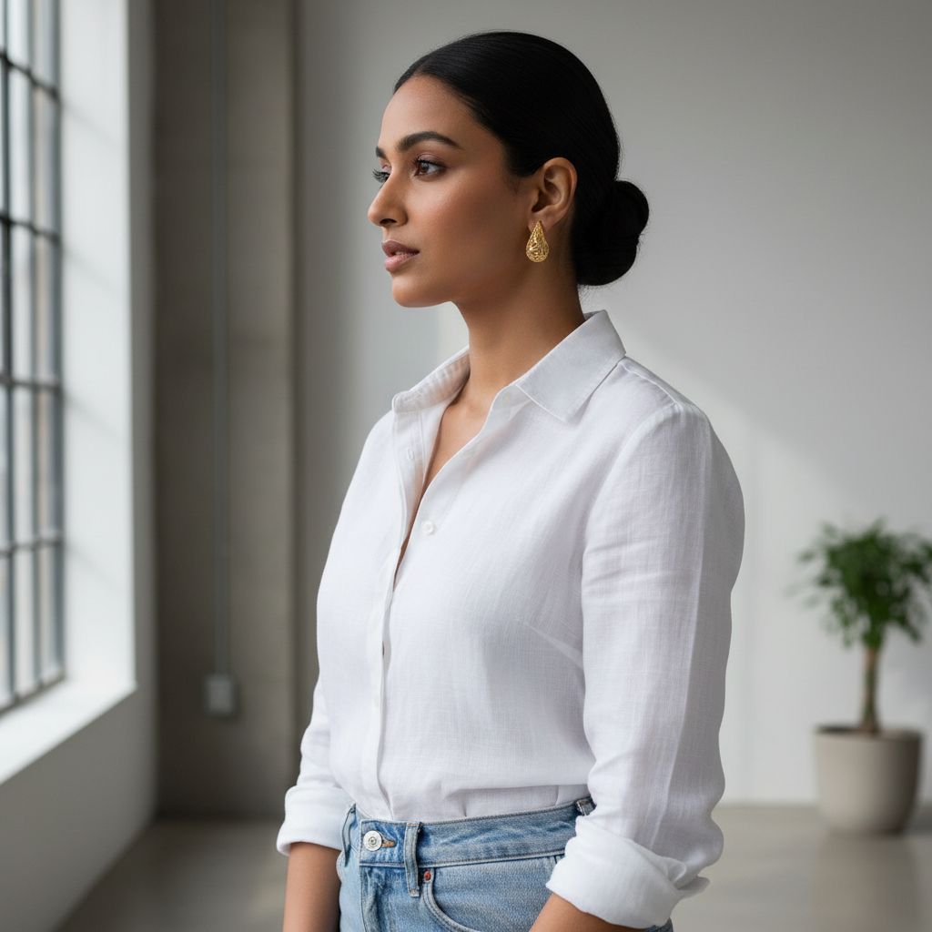 These golden teardrop earrings combine timeless elegance with expert craftsmanship. Their sleek, polished finish and graceful shape make them a versatile accessory for both formal occasions and everyday wear.