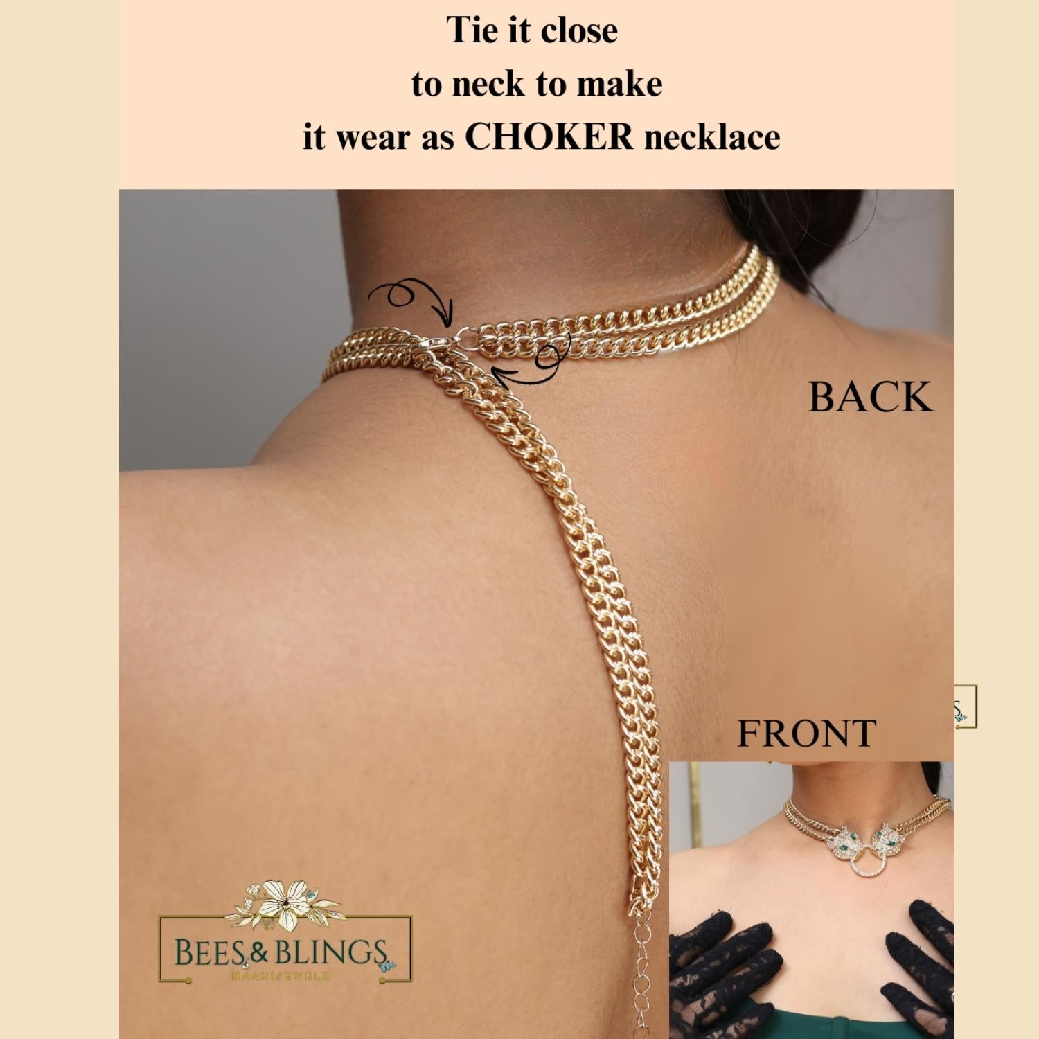 Transform your look with our versatile panther party wear statement necklace.