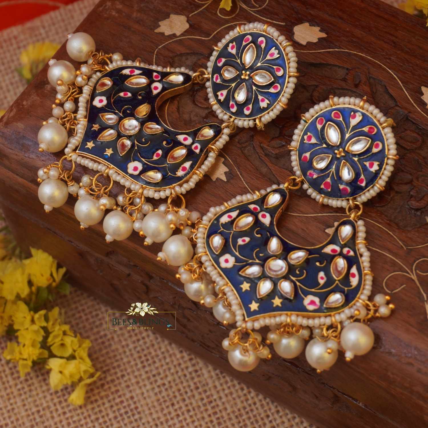 Blue meenakari kundan earrings
