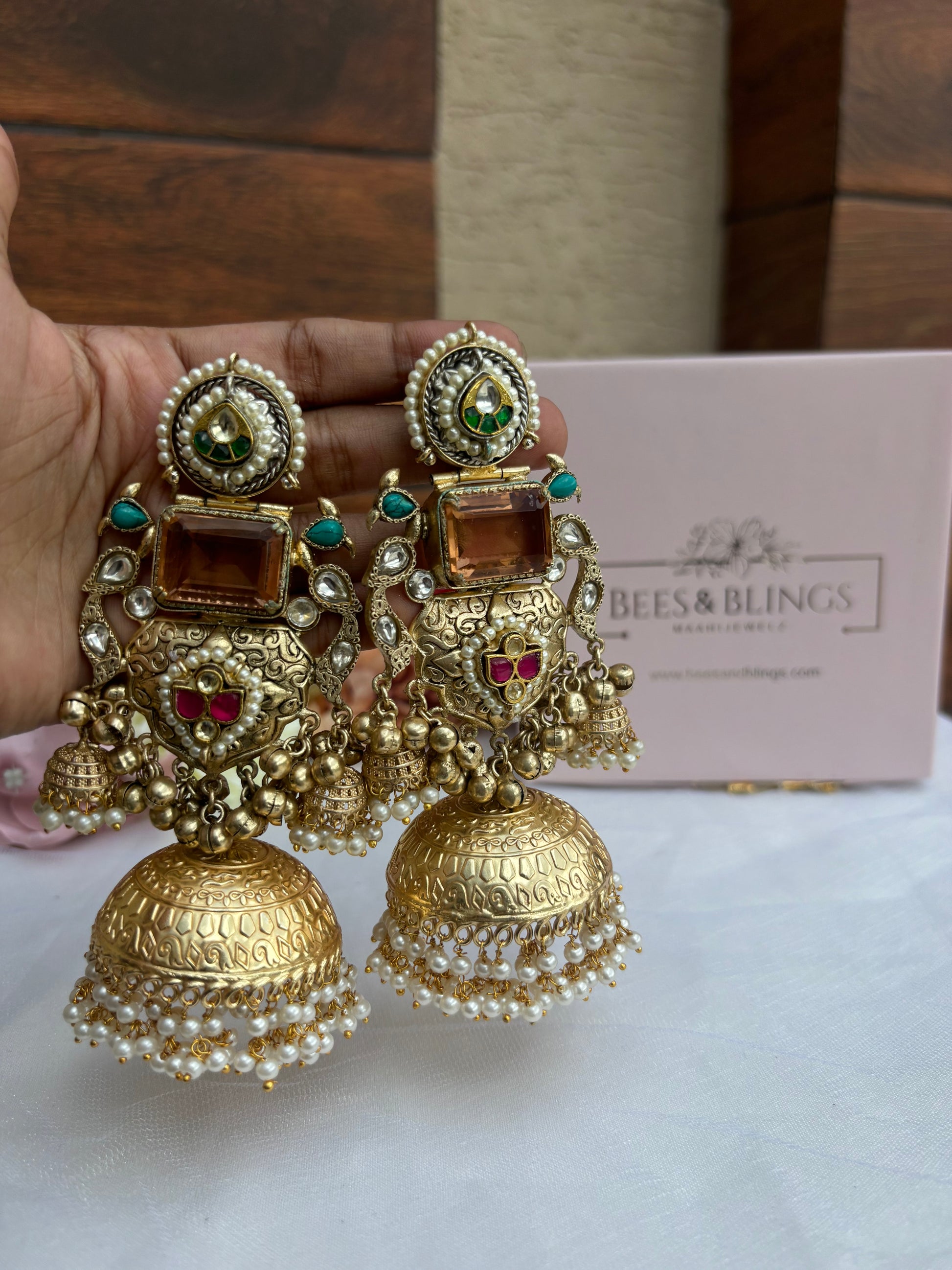 These GOLDEN-RAAS RASIYA PREMIUM-BRASS JHUMKASย are expertly designed and crafted with high-quality brass, ensuring durability and long-lasting shine. Their stunning golden color and intricate patterns make them a perfect accessory for any occasion. Take your style to the next level with these premium jhumkas.